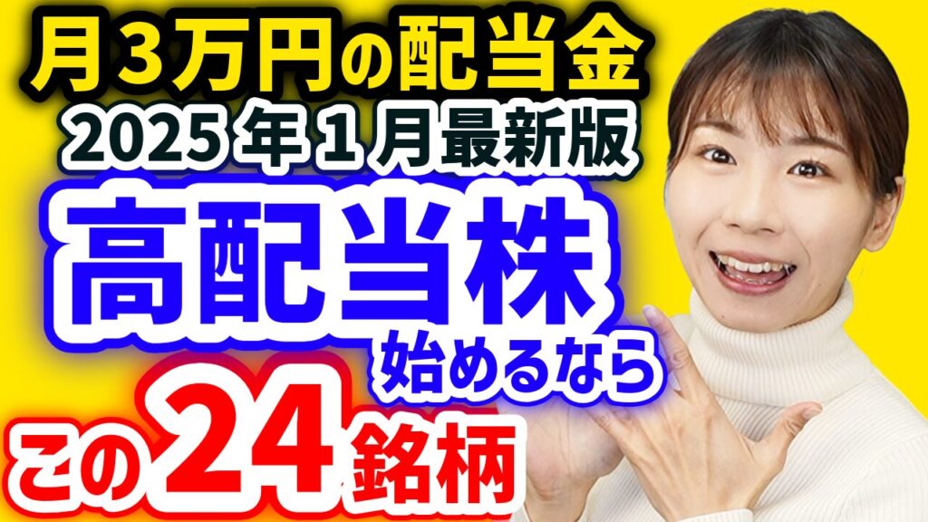 【月3万円の配当金】今から日本高配当株始めるならこの24銘柄【2025年1月利回りランキング】