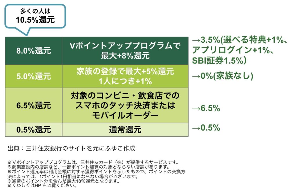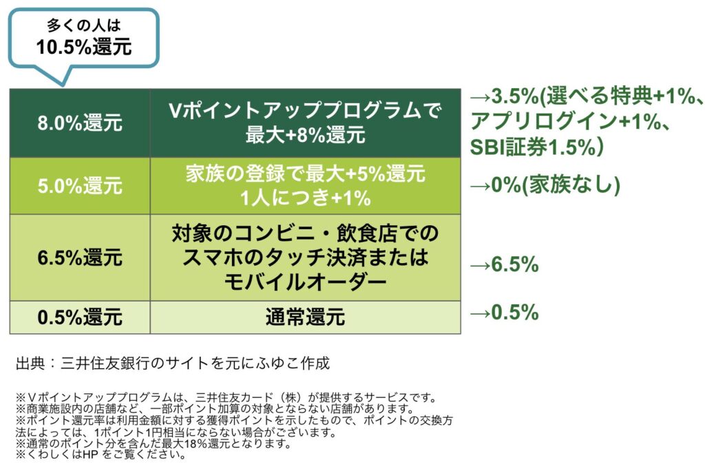 Vポイントアッププログラムによる還元率アップは+3.5%になる人が多そうです。